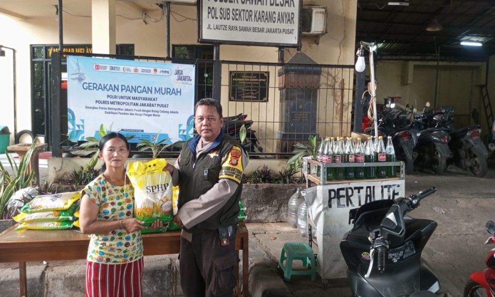 Jakarta Pusat — Dalam semangat fungsi preventif sosial, Polsek Sawah Besar melalui Bhabinkamtibmas Kelurahan Karang Anyar, Aiptu Saefudin, turut mendampingi POKDAR KAMTIBMAS dalam kegiatan Gerakan Pangan Murah, Polri untuk Masyarakat di halaman Polsubsektor Karang Anyar, Jalan Lautze, RW 001, Kelurahan Karang Anyar, Kecamatan Sawah Besar, Jakarta Pusat, Minggu (5/10/2025).