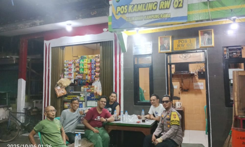 Jakarta Pusat – Dalam upaya menjaga keamanan dan ketertiban masyarakat di wilayahnya, Bhabinkamtibmas Kelurahan Kampung Rawa Aipda Ikhwan melaksanakan kegiatan patroli wilayah dan kunjungan ke Pos Satkamling RT 11/RW 02 pada Senin (6/10/2025) dini hari, sekitar pukul 01.30 WIB.