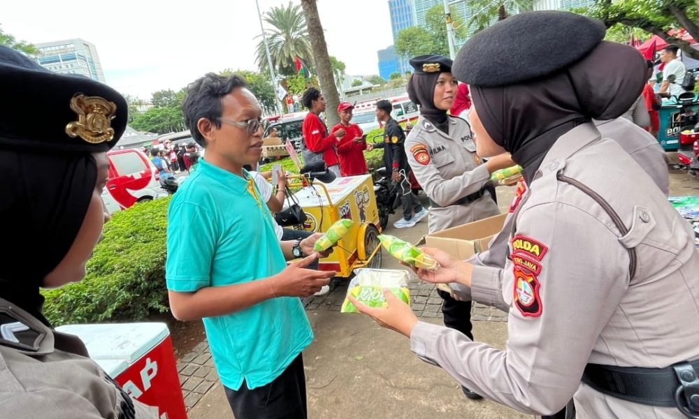 Aksi yang dimulai sekitar pukul 14.00 WIB itu berlangsung tertib. Massa menyuarakan solidaritas dan keprihatinan terhadap kondisi kemanusiaan di Palestina. Di tengah aksi, polisi hadir bukan hanya sebagai penjaga keamanan, tetapi juga memberikan sentuhan humanis.