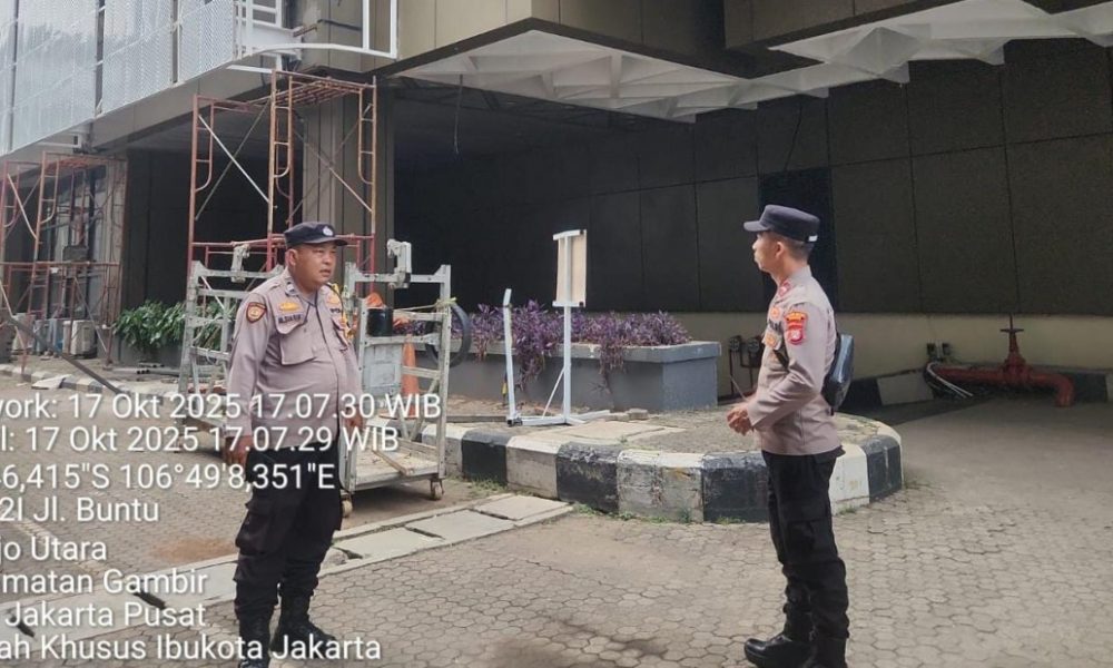 Jumat, 18 Oktober 2025 — Personel Polsek Metro Gambir melaksanakan kegiatan pengamanan dan penjagaan aset vital nasional di kantor PT PELNI, yang berlokasi di Jl. Gajah Mada No.14, Kelurahan Petojo Utara, Kecamatan Gambir, Jakarta Pusat. Kegiatan ini dilakukan sebagai bentuk antisipasi terhadap potensi gangguan keamanan yang mungkin timbul selama berlangsungnya proses persidangan hingga keluarnya keputusan resmi dari Pengadilan Negeri Jakarta Pusat.