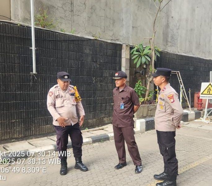 Selasa pagi, 21 Oktober 2025, suasana di Kantor PT PELNI, Jalan Gajah Mada No.14, Kelurahan Petojo Utara, Kecamatan Gambir, Jakarta Pusat, tampak berjalan tertib dengan kehadiran petugas kepolisian yang melakukan pengamanan dan penjagaan. Kegiatan ini dilaksanakan oleh jajaran Polsek Metro Gambir dalam rangka menjaga keamanan serta memastikan situasi tetap kondusif di sekitar area aset vital milik negara tersebut.