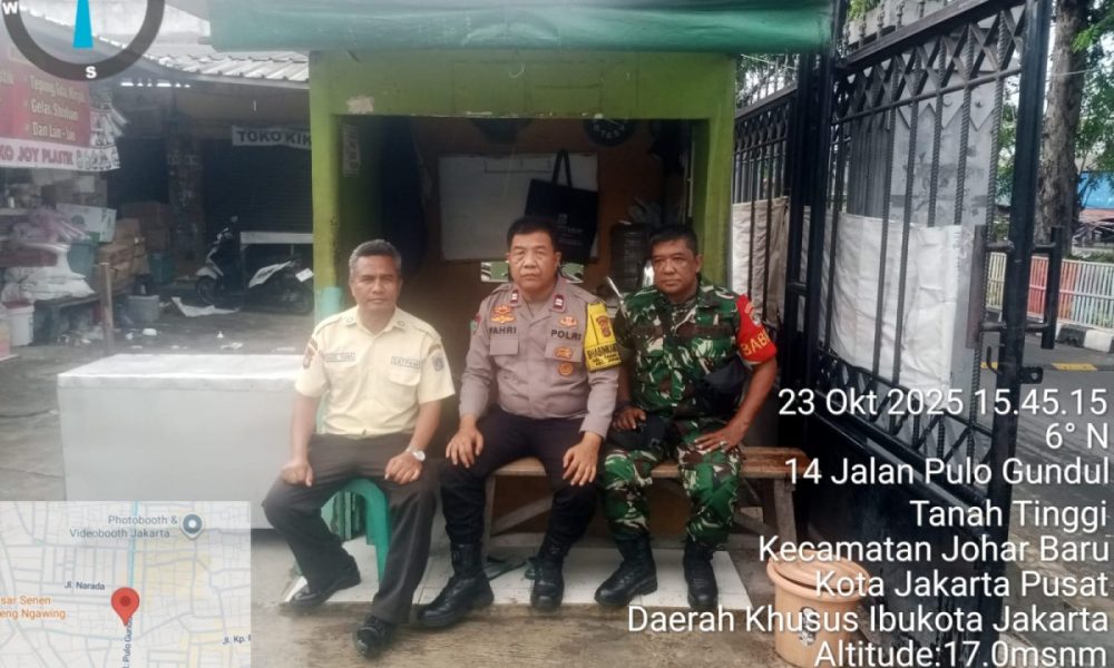 Jakarta Pusat – Sebagai upaya menjaga keamanan dan ketertiban masyarakat, Bhabinkamtibmas Kelurahan Tanah Tinggi, Aiptu Fahri, bersama Babinsa Kelurahan Tanah Tinggi, Pelda Rimba, melaksanakan sambang Pasar Lokbin RW 08 Pulo Gundul pada Kamis (23/10/2025) di Jl. Kramat Pulo Gundul, Kelurahan Tanah Tinggi, Johar Baru, Jakarta Pusat.