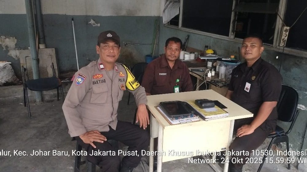 Jakarta Pusat – Dalam rangka menjaga situasi keamanan dan ketertiban masyarakat, Bhabinkamtibmas Kelurahan Galur, Aiptu Baktiar, melaksanakan kegiatan sambang dan cooling system di Showroom Mobil Mitsubishi yang berlokasi di Jl. Letjen Suprapto RT 02 RW 03, Kelurahan Galur, Kecamatan Johar Baru, Jumat (24/10/2025) pukul 16.00 WIB.