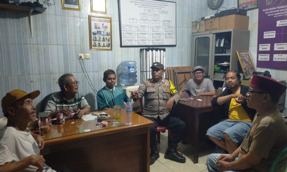 Jakarta Pusat – Dalam upaya menjaga keamanan dan ketertiban masyarakat, Bhabinkamtibmas Kelurahan Galur, Aiptu Baktiar, melaksanakan kegiatan sambang Pos Kamling RW 06 di Balai Warga RW 06, Jl. Rawa Tengah, Kelurahan Galur, Johar Baru, pada Minggu (26/10/2025) pukul 22.30 WIB.