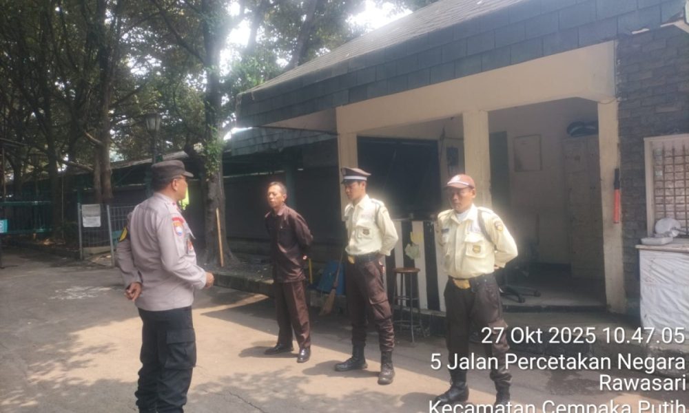 Jakarta Pusat – Dalam rangka menjaga keamanan dan ketertiban lingkungan perkantoran, Bhabinkamtibmas Kelurahan Johar Baru, Aiptu Sunarto, melaksanakan kegiatan cooling system dan patroli lingkungan di Gedung PNRI, Jalan Percetakan Negara Raya No. 21 RW 07, Kelurahan Johar Baru, Kecamatan Johar Baru, pada Senin (27/10/2025) pukul 13.30 WIB.
