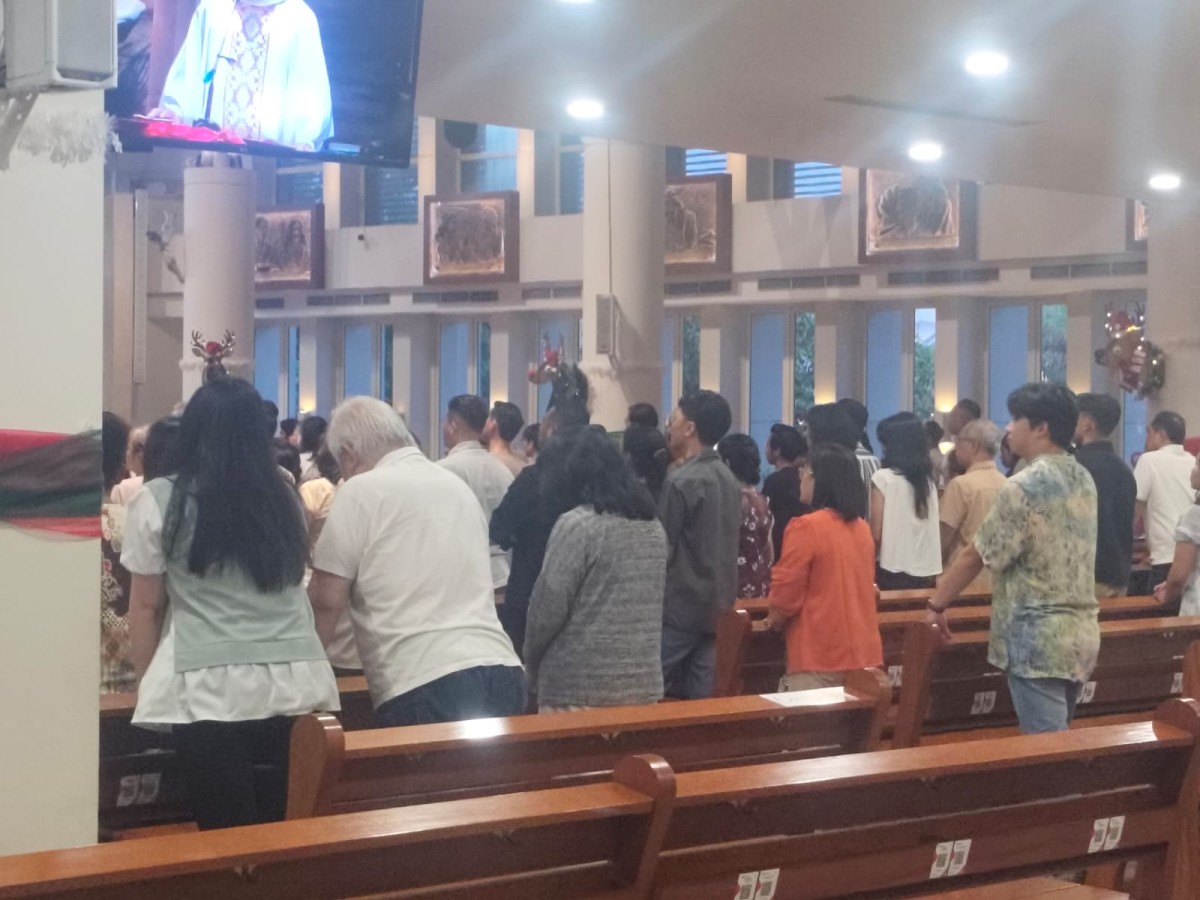 Ibadah awal tahun di Gereja Kristus Raja dilaksanakan dalam dua sesi. Sesi pertama berlangsung pada pukul 09.00 hingga 10.30 WIB dan dipimpin oleh Romo Antonius Suyadi dengan tema “Ibadah Awal Tahun.” Sekitar 150 jemaat hadir mengikuti rangkaian ibadah dengan khidmat.