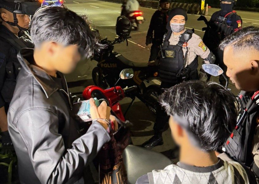 Jakarta – Patroli gabungan Brimob Batalyon B Pelopor bersama Perintis Polres Metro Jakarta Timur kembali menemukan pelanggaran saat menyisir wilayah Jakarta Timur, Sabtu (5/4/2026) malam hingga dini hari. Empat remaja kedapatan melaju dengan kecepatan tinggi tanpa menggunakan helm di Jalan Otto Iskandar Dinata. Saat dihentikan, mereka tidak dapat menunjukkan surat kendaraan dan langsung diamankan petugas untuk pendataan lebih lanjut. Petugas mengamankan dua remaja beserta dua unit sepeda motor, masing-masing Yamaha Fino warna merah dan Honda Beat warna abu-abu lanjut diserahkan ke Polres Metro Jakarta Timur untuk dilakukan penilangan.