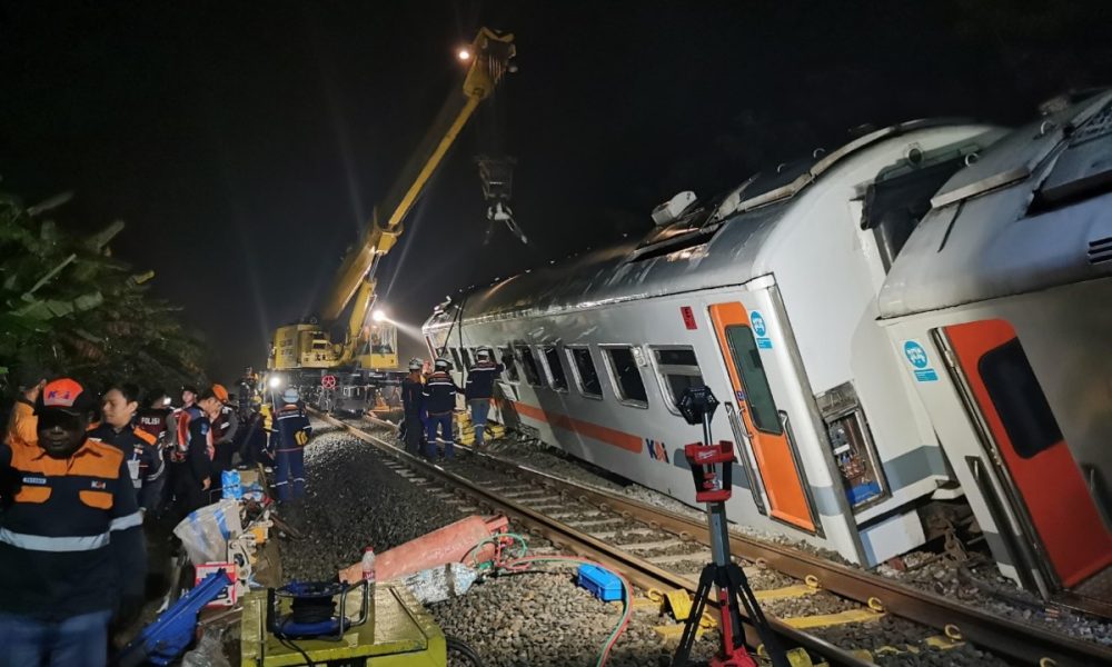 Kabar-kini.com, PT Kereta Api Indonesia (Persero) terus mencatat progres positif dalam penanganan evakuasi KA (161) Bangunkarta di Emplasemen Stasiun Bumiayu. Hingga Senin (6/4) malam pukul 21.30 WIB, tim teknis di lapangan telah berhasil melakukan re-railing atau mengembalikan satu dari tiga unit kereta yang terdampak (K3 00508) ke posisi rel. Keberhasilan tahap awal ini menjadi langkah krusial bagi petugas untuk melanjutkan proses pengangkatan dua rangkaian lainnya menggunakan sarana Crane yang telah berada di lokasi.