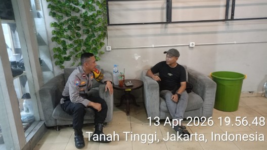 Kegiatan tersebut dilaksanakan pada Kamis, 9 April 2026 pukul 19.30 WIB di Jl. Baladewa RW 03, dengan pelaksana Aipda Tangguh selaku Bhabinkamtibmas Kelurahan Tanah Tinggi. Dalam kegiatan ini, petugas melakukan pemantauan sekaligus komunikasi langsung dengan penanggung jawab keamanan, Saudara Suryana.