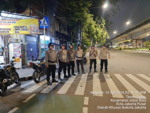 Jakarta Pusat – Dalam rangka menjaga stabilitas keamanan saat jam rawan, jajaran Polsek Johar Baru melaksanakan patroli cipta kondisi pada Kamis (16/4/2026) dini hari. Kegiatan dimulai sekitar pukul 02.15 WIB dengan menyisir sejumlah titik rawan di wilayah hukum Polsek Johar Baru.
