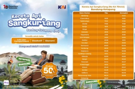 PT Kereta Api Indonesia (Persero) menghadirkan layanan baru KA Sangkuriang yang melayani perjalanan langsung relasi Bandung–Ketapang, Banyuwangi. Layanan ini mulai beroperasi pada 1 Mei 2026 untuk perjalanan Bandung–Ketapang (KA 7044A), sementara arah sebaliknya Ketapang–Bandung (KA 7043A) mulai berjalan pada 2 Mei 2026.